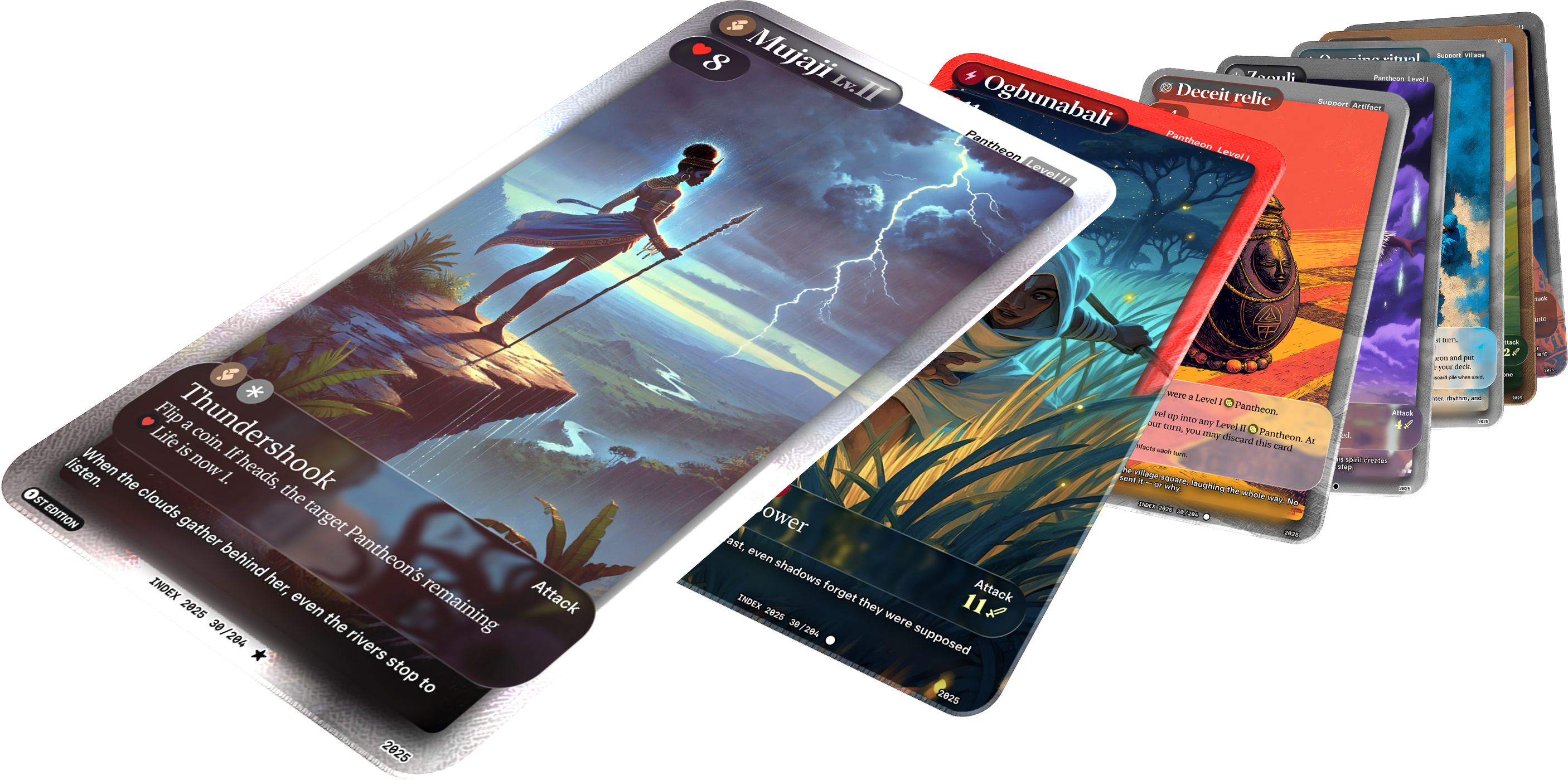 Every card carries real myths. Retold through art and play,anyone can join the story.